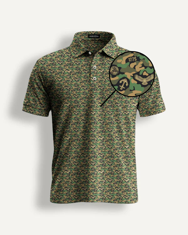 Inspired by the unity and discipline of the United States Military Branches, the polo features a colorway inspired by the respective branch layered with subtle elements.
